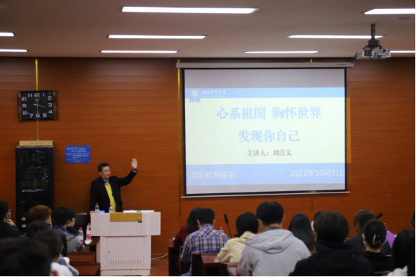 在将近2个小时的讲座中,刘江义结合党的二十大报告主要内容,从理论到实践讲述了作为国际化人才应具备心系祖国的使命感和胸怀世界的大格局。刘江义还着重引导员工拓展国际视野、梳理国际化思维、明确个人发展目标,探寻各领域高端人才国际化发展路径,准确把握发展机会,在人才强国的背景下,提升自身的国际竞争力。他建议同学们积极行动,为海外留学或实践交流做好有意义的准备。