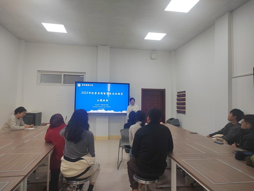 11月30日,2023年秋季学期职工安全教育主题班会成功举行。本次班会以“多彩经贸自在留学,增强安全风险意识”为主题,对全体在华职工进行了一次全面系统的安全教育。