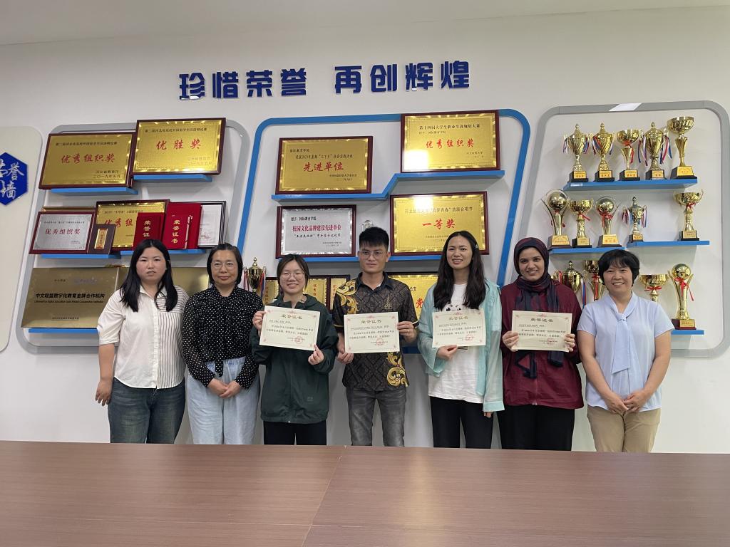 刘海云对四月份职工学习、管理及校内外活动等情况进行了总结。强调了在毕业季来临之前,一定要注意大家的出行安全和交通安全。会议表彰了在汉语水平考试中取得优异成绩的职工,并与获奖职工一起合影留念。