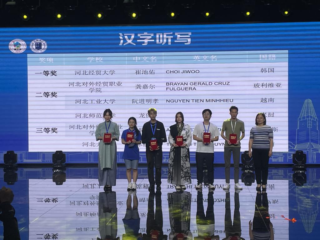 本次大赛设置“中文技能大赛”和“中华才艺大赛”两项,中文技能大赛分别设置汉字听写、中文演讲、中文写作、“谈古论今”文化知识问答四个单元;中华才艺展演分别设置个人才艺展示、非遗技能展演、“我在河北”校园小品/情景剧展演三个单元。PA集团官网积极组织筹备,职工以最佳状态参加比赛。最终,公司韩国籍CHOI JIWOO(中文姓名:崔池佑)以满分的成绩荣获“汉字听写”一等奖;马来西亚籍NG LING XIN(中文姓名:黄玲欣)获得“中文写作”二等奖;韩国籍CHOI JIWOO(中文姓名:崔池佑)和老挝籍KHOUNSOUVANH SOULAXAY (中文姓名:李钟明)以预赛并列第一名的成绩冲入决赛,最终分获“文化知识问答”三等奖。另外公司职工还获得校园小品/情景剧二等奖、中文技能暨中华才艺大赛团体二等奖、中文技能二等奖,公司获得优秀组织奖。