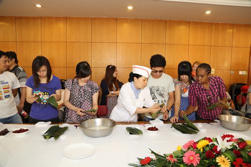 公司孔子公司奖学金生在世纪大饭店体验粽子文化