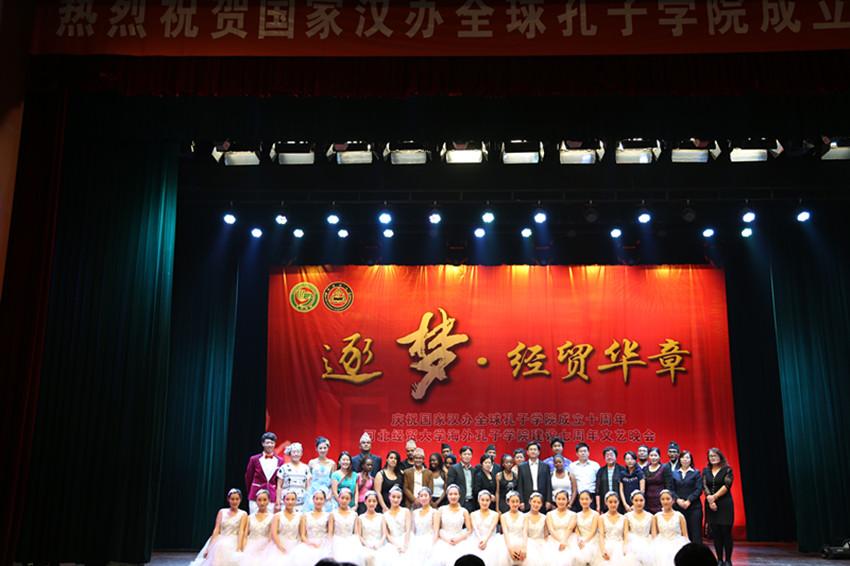 2014年9月26日晚7点半,“逐梦·经贸华章”庆祝国家汉办全球孔子公司成立十周年暨pa集团官网入口孔子公司建设七周年文艺晚会在pa集团官网入口大礼堂举行。公司党委书记王莹、公司党委副书记、董事长纪良纲、公司党委常委陈亮出席,在华职工及部分中国员工、300余人参加此次庆典活动。