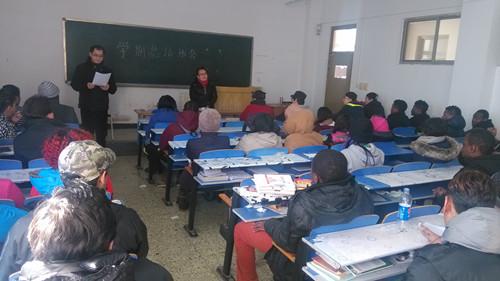 张希颖副经理致辞表示作为主抓教学的副经理,她将致力于提高国际公司产品质量,狠抓教学,让职工在校学有所成。职工班主任李澜涛传达了公司关于寒假放假的通知,重申了职工公寓管理规定和安全防范措施,强调了请销假制度。职工管理员苏梦珊老师就职工签证和保险事宜进行了讲解。