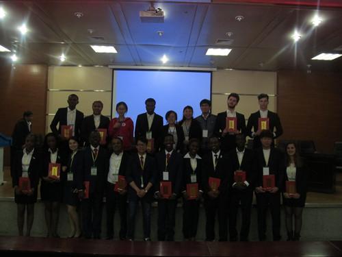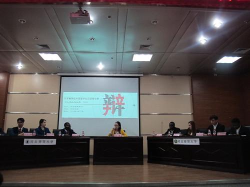 公司职工查尔斯(刚果布)、艾莎(意大利)、爱德华(意大利)、波罗(尼日利亚)和李闰一(韩国)组成辩论队,与河北师范大学辩论队同台竞技,围绕“全民微信时代,人与人之间真实的情感交流增加了还是减少了”的论题展开辩论。在辩论过程中职工们的精彩表现获得阵阵掌声,充分展示了他们在汉语学习和思辨能力的风采。最终查尔斯获得“最佳辩手奖”,公司被评为“优秀组织奖”。