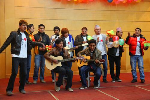 联欢会在商公司员工表演的《Jingle Bell》中拉开序幕。来自印度尼西亚和尼泊尔的职工集体表演了尼泊尔传统舞蹈,绚丽多姿,具有强烈的民族气息。来自韩国职工表演的中文节目,和韩语歌曲,娓娓动听、动人心弦。加纳职工艾博与其导师成健教授以响遏行云的嗓音、亦师亦父的感情合唱的《天赐鸿福》打动了所有在场的的观众,把联欢会推向了高潮。