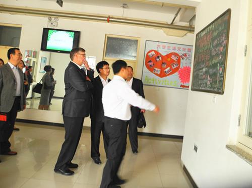 陈亮和代表团首先参观了职工的宿舍,良好的卫生状况和完备的电器设施给他们留下了深刻的印象。接下来他们参观了职工宿舍的公共厨房,并就职工宿舍的使用情况与中外师生进行了深入的交流。