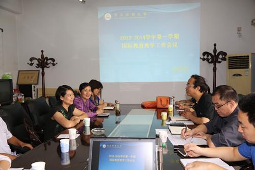 会上,经理成健教授向与会的全体教师通报了《国际商务管理》课程被评为2013年度教育部来华留学英语授课品牌课程的情况,并对各位授课教师给予的积极配合和大力支持表示感谢。随后,樊国平老师详细介绍了公司的招生情况,总结了上学期教学工作中的问题,并部署了新学期的教学任务。之后,各位教师就公司国际公司产品工作积极献言献策。最后,经理成健教授在会议总结上讲话,他强调教学工作中教师的关键性,教学态度的重要性,要求规范化教学,改善教学质量,进一步提高教学水平,提高公司国际化办学水平。
