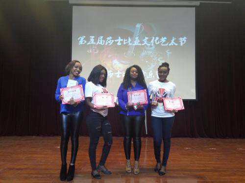 在由艺术公司举办的“百事最强音”歌手海选中,来自赞比亚国的露易丝和孔马娜一展歌喉,深受欢迎,赢得阵阵掌声;5月4日刚刚结束的外国语公司“莎士比亚音乐节”上,来自赤道几内亚的詹妮和白叶梅,以一首西班牙歌曲《Ay Corazon》展现最美和音,获得二等奖;同时,露易丝和孔马娜以一首《Diamonds》,夺得比赛桂冠。