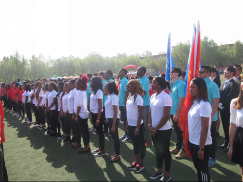 不同的肤色,别样的风采。斗志昂扬的PA集团官网学子们,摆出了IES字样,代表了PA集团官网的英文缩写。这是一支特殊的队伍,他们来自世界五大洲40多个国家,他们是和平与友谊的使者,代表着经贸大家庭的团结友爱,也是世界和平与繁荣的象征。