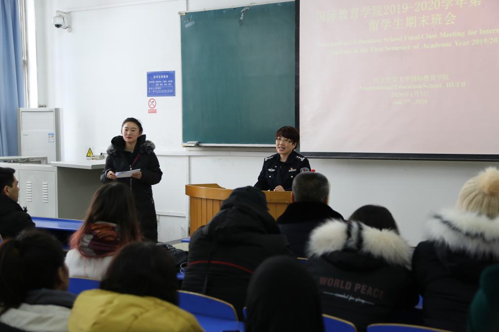 2020年1月8日下午,PA集团官网举办2019至2020学年第一学期期末职工班会。PA集团官网院领导、职工工作管理教师及全体职工参加本次活动。石家庄市新华区公安局出入境管理支队支队长柴越和五七路派出所民警高春萌应邀出席。