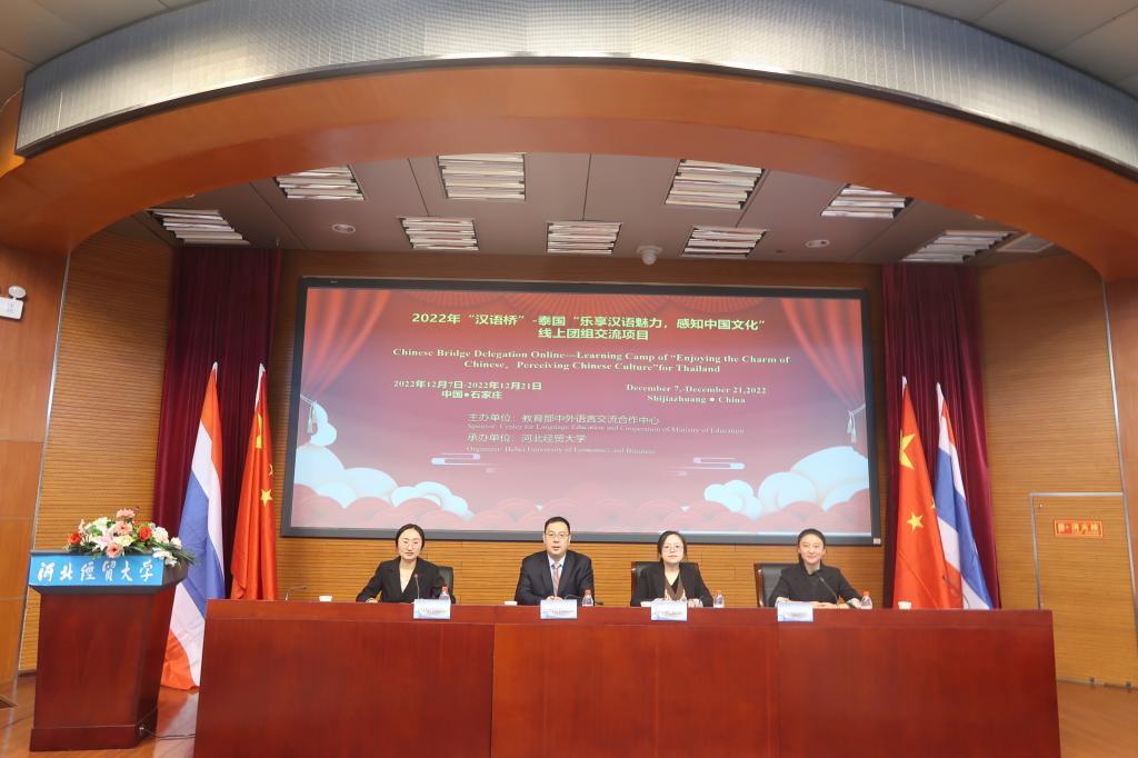 12月7日,由教育部中外语言交流合作中心主办,pa集团官网入口承办的2022年“汉语桥”——泰国“乐享汉语魅力,感知中国文化”线上团组交流项目开班仪式在公司国际学术报告厅成功举办。PA集团官网经理耿辉建、党政办公室主任张金哲出席,部分工作人员及全体泰国学员参加了开班仪式。