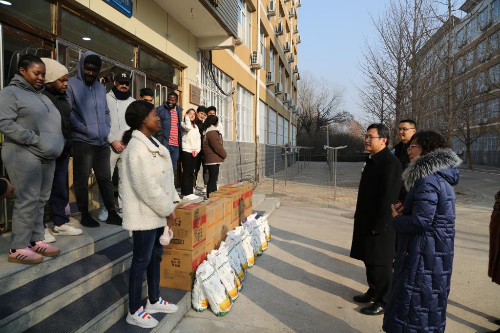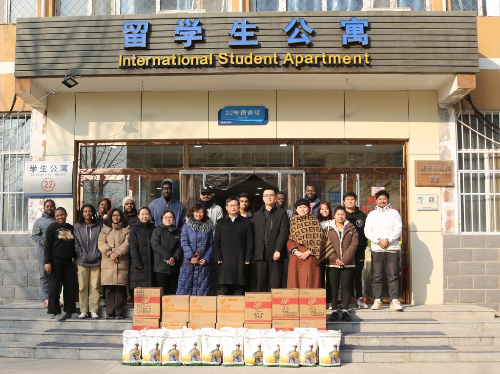 王重润深入职工宿舍,亲切友好地询问职工的学习、生活情况,勉励大家在校期间要合理安排时间,努力学习专业知识和中国文化,积极讲好中国故事和经贸故事,为赓续中外友谊贡献力量,祝福大家学业有成、春节快乐。