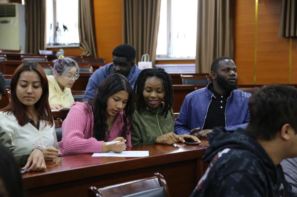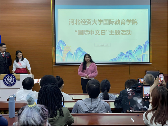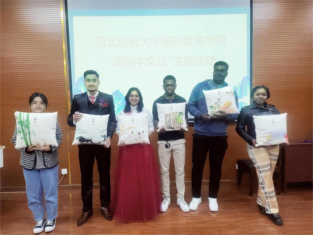 活动通过诗词诵读、文化竞猜、音乐展演等沉浸式体验,展现中文跨越时空的文化传承,架起中外文明互鉴的桥梁。来自赤道几内亚、尼泊尔、赞比亚的职工代表联袂登台,以中文歌曲串联起文化共鸣。在“诗词跨时空跟读”环节,通过电影《长安三万里》中李白《将进酒》的豪迈诵读片段,带领师生穿越盛唐气象。在“甲骨文限时竞猜”环节,职工以五人小组形式展开角逐,在互动中溯源汉字演变。在“中国传统二十四节气排序”竞赛环节,职工以智趣结合的方式,深化了对中国农耕文明的认知。