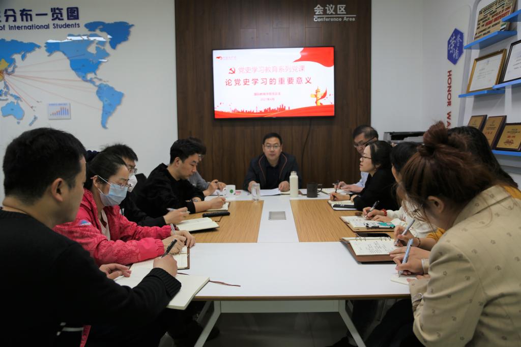 4月26日下午,公司党总支在外事楼103会议室召开党史学习教育系列党课之“论党史学习教育的重要意义”党史学习教育会,公司党总支书记耿辉建作为主讲人,为全院教师上了一堂内容丰富的党课。