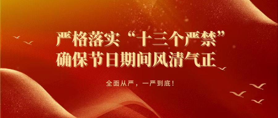 “五一”期间,全院师生要严格遵守各项纪律规定,把纪律要求进一步转化为内在追求,把落实中央八项规定精神转化为思想自觉和行动自觉,切实做到“十三个严禁”: